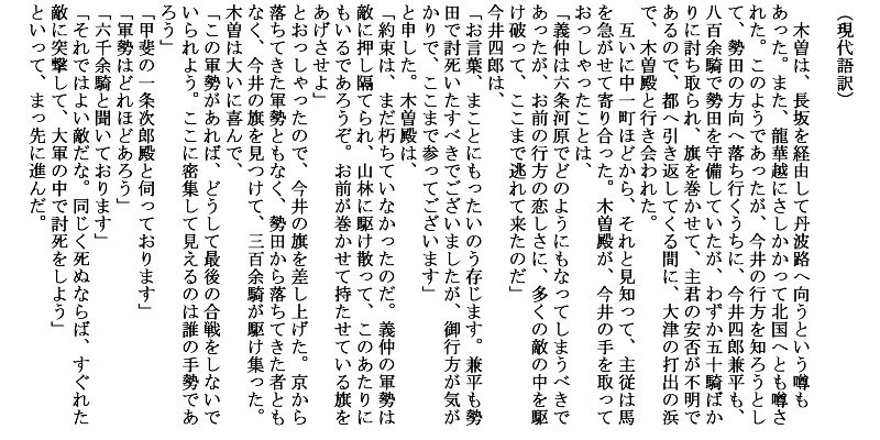 平家物語 - 巻第九・木曽最期 『木曽は長坂を経て丹波路へ赴くとも聞こえけり…』 (原文・現代語訳)