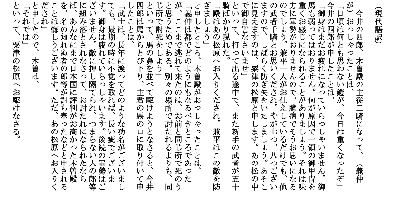 平家物語 - 巻第九・木曽最期 『今井の四郎、木曽殿…』 (原文・現代語訳)