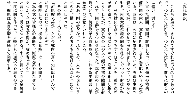 平家物語 - 巻第九・二度之懸 『これら弟兄、究竟の弓の上手なれば…』 (原文・現代語訳)